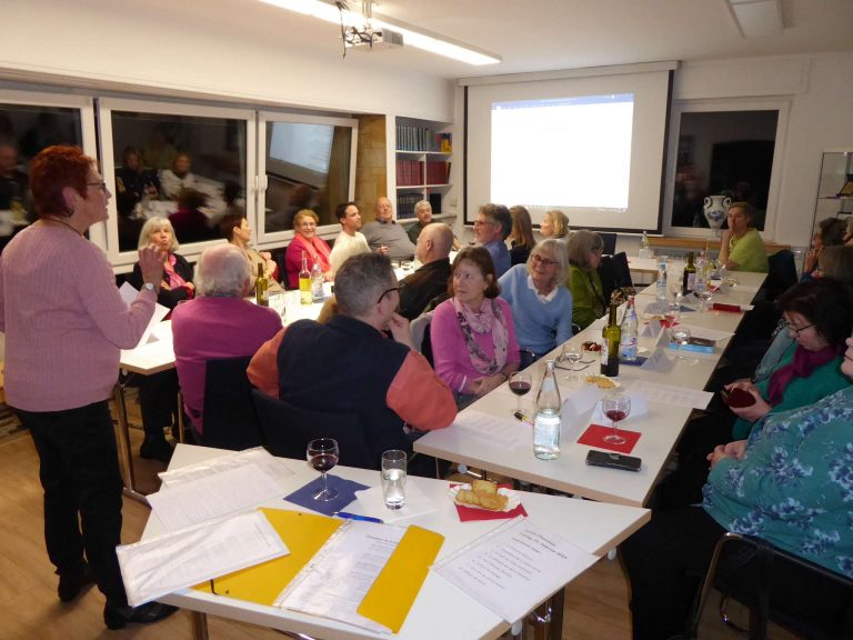 Zwischendurch gab es eine kleine Pause mit französischen Snacks (Salzgebäck, Käse, Weintrauben, Wein), so dass man sich auch mal mit anderen Teilnehmern als den unmittelbaren Sitznachbarn unterhalten konnte.